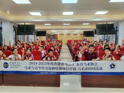 2024 - 2025年度“香港赛马会 - 广东省马术协会马术与青少年交流和培训项目计划”活动于5月19日走进广州天河华颖外国语小学。此次活动由广东省马术协会主办,香港赛马会大力支持,为该校师生带来了一场精彩的马术运动及赛马运动知识科普讲座。