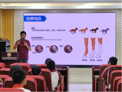 本次活动邀请到国家级裁判、广东省马术协会常务副会长陈广新老师担任主讲人。课堂上,陈老师以生动有趣的方式讲解了马的历史、马术的种类以及马在中国文化中的重要地位等内容,深深吸引了同学们的注意力,让他们对马文化产生了浓厚的兴趣。同学们聚精会神地聆听,沉浸在知识的海洋中。